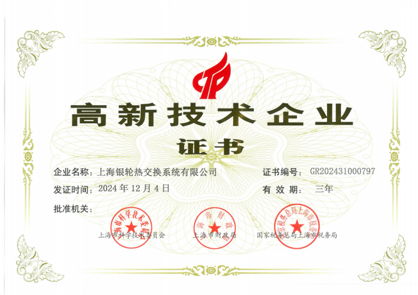 近日,上海銀輪熱交換系統(tǒng)有限公司(以下簡稱“上海銀輪”)榮獲高新技術企業(yè)證書。這一重要認證標志著上海銀輪在技術創(chuàng)新、研發(fā)能力以及自主知識產(chǎn)權等方面的突出表現(xiàn),為公司未來的發(fā)展提供了新的動力,也為行業(yè)樹立了技術領先的標桿。
