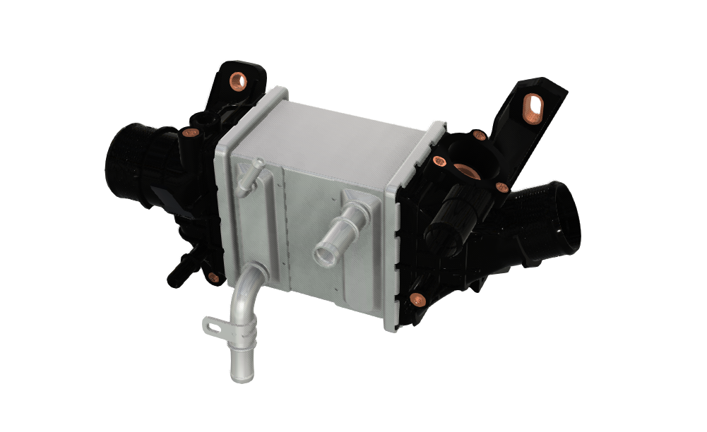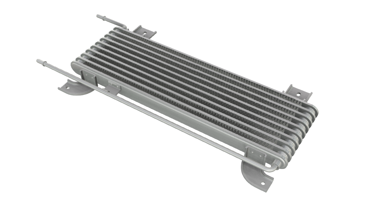 整體式鋁油冷器能夠在產(chǎn)品上布置引流和旁通通道,滿足不同油口和流量布置需求,同時(shí)單向閥、溫控閥等零件的集成能夠?qū)崿F(xiàn)潤滑油在流動和溫度上的管控。